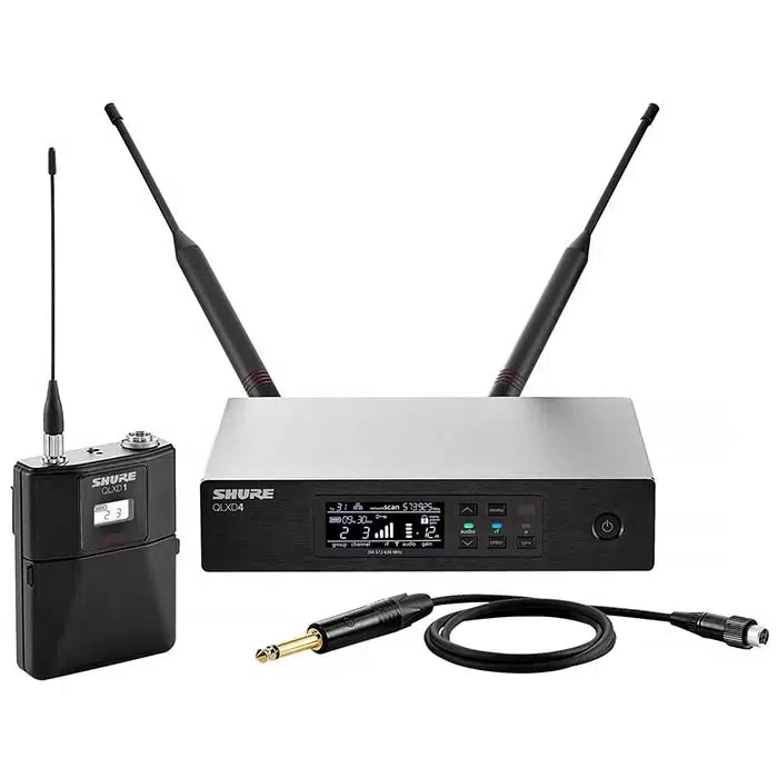 MIC INALÁMBRICO SHURE QLXD14-J50 tiene un sistema está disponible como QLXD14. Se compone de un transmisor QLXD1, un cable de instrumento WA302 y un receptor QLXD4.
